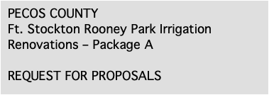 • Pecos County Ft. Stockton Rooney Park Irrigation Renovations – Package A REQUEST FOR PROPOSALS